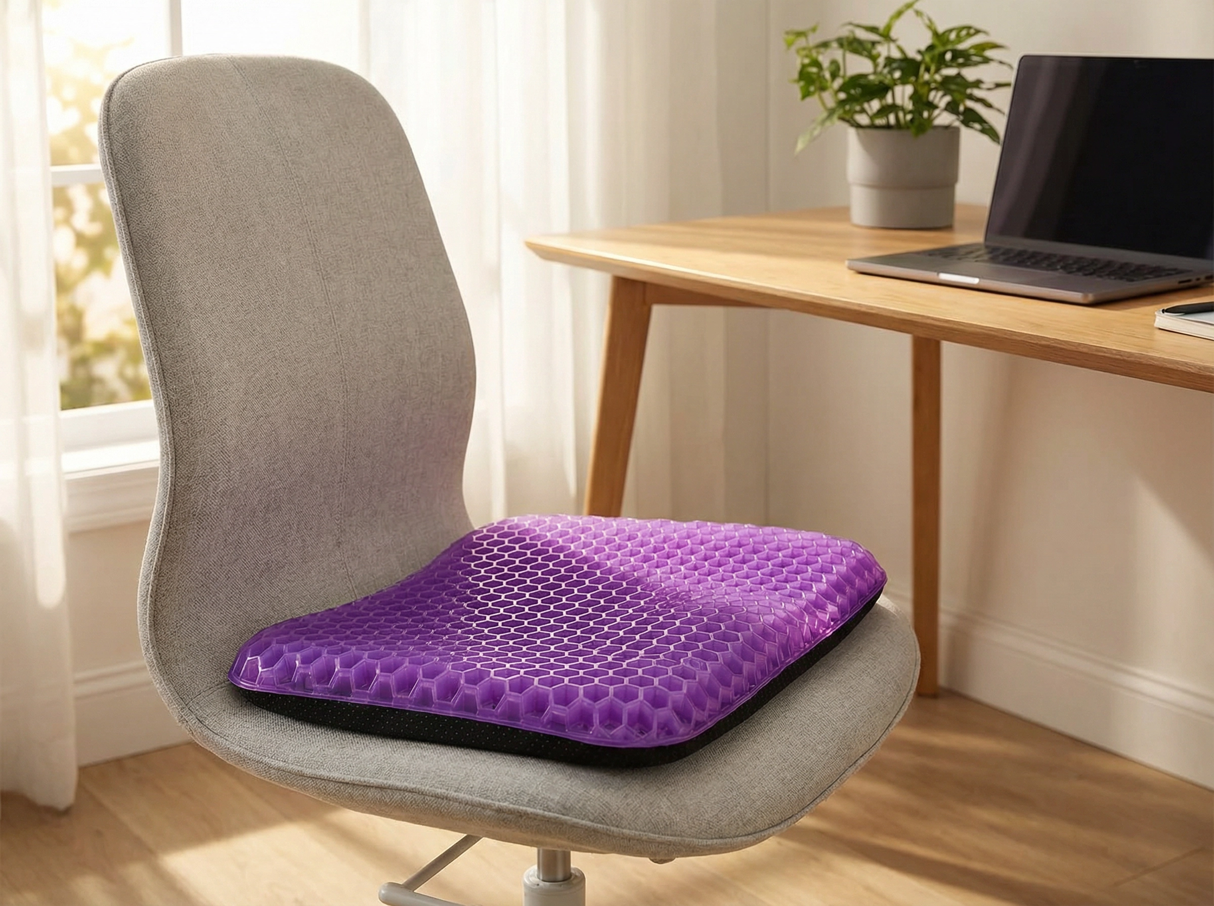 "My doctor recommended a gel cushion for my sciatica. This one is perfect. The honeycomb design keeps it cool and comfortable all day."